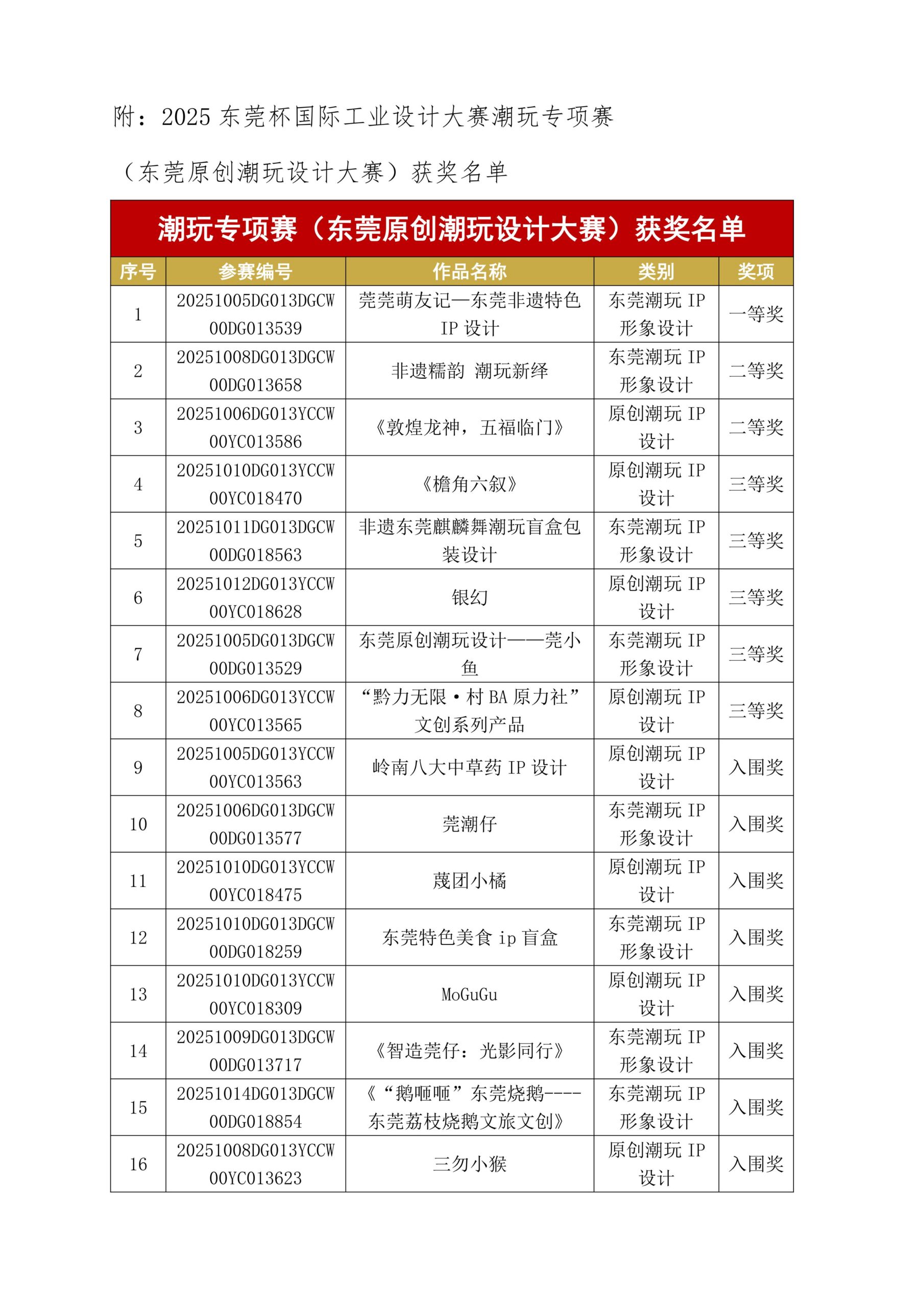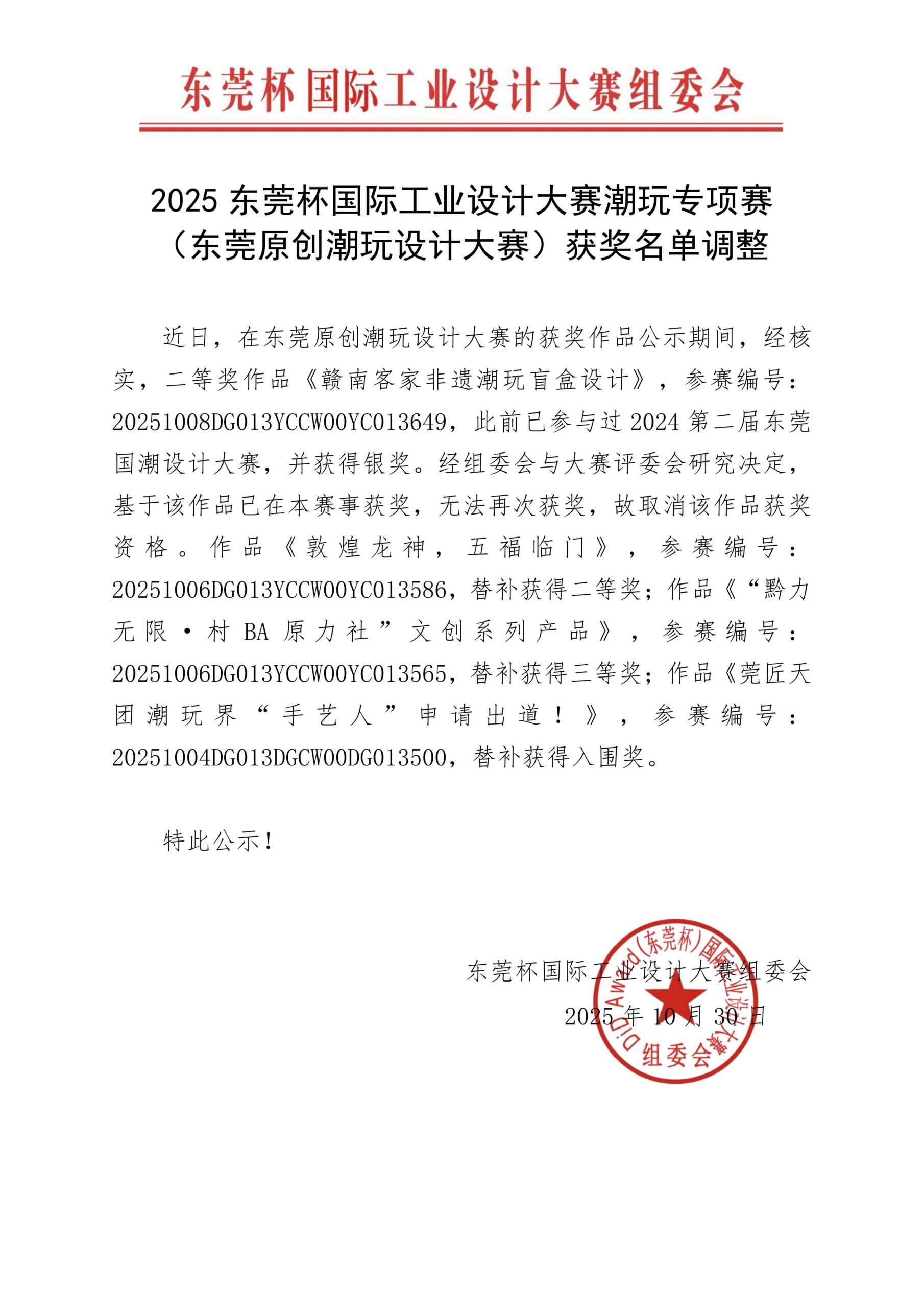 【重要通知】2025东莞杯国际工业设计大赛潮玩专项赛(东莞原创潮玩设计大赛)获奖名单调整